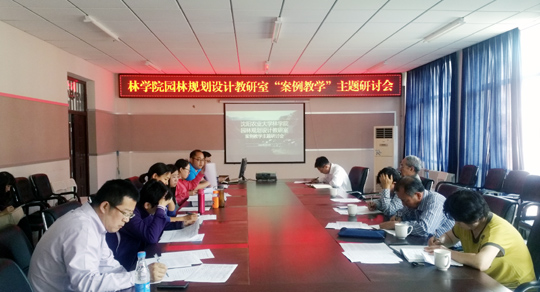 这就是林学院风景园林专业案例教学主题研讨会的现场。在园林规划设计教研室主任崔迪老师的主持下,园林规划设计教研室的10位教师,首先学习了学校教务处下发的《关于征集沈阳农业大学本科课程创新创业教育案例的通知》,听取了邓舸老师传达不久前在上海交大召开的全国风景园林专业学位教学案例工作会议精神,结合风景园林专业正在进行的向培养应用型创新性人才转变的教学改革试点实际,对如何认识和正确实施案例教学展开了充分热烈的讨论。在一个恰当的时机选择了一个适宜的题目,便打开了老师们思维的闸门,思想的洪流一泻千里。
