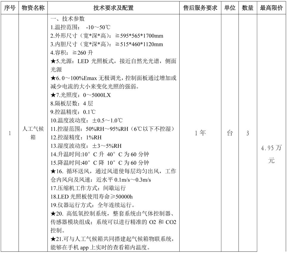 一、项目名称:开云官方在线入口人工气候箱询价采购项目