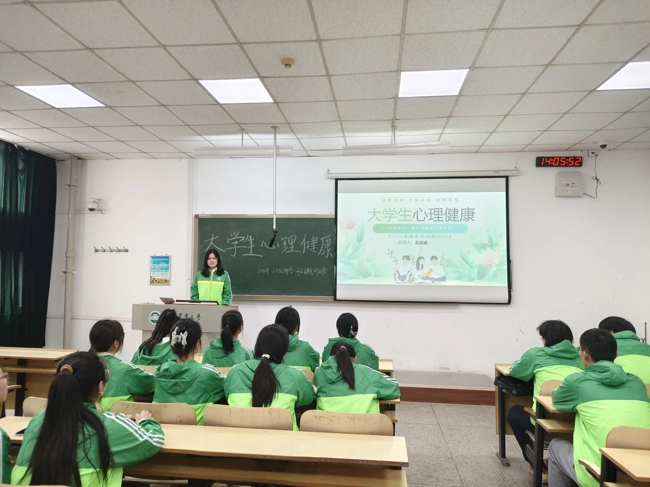 各班心晴使者召开普及心理健康知识为主题的班会,让同学更明确心理健康的内涵,享受大学生活。