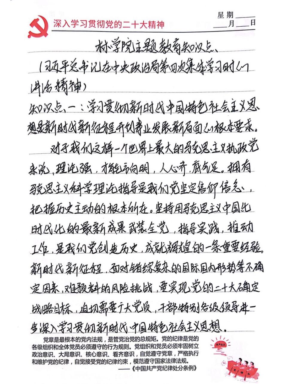 本周林学院主题教育围绕习近平总书记在中央政治局第四次集体学习时的讲话精神展开自学。让我们看一看师生党员在理论联系实际的过程中有哪些感悟吧!