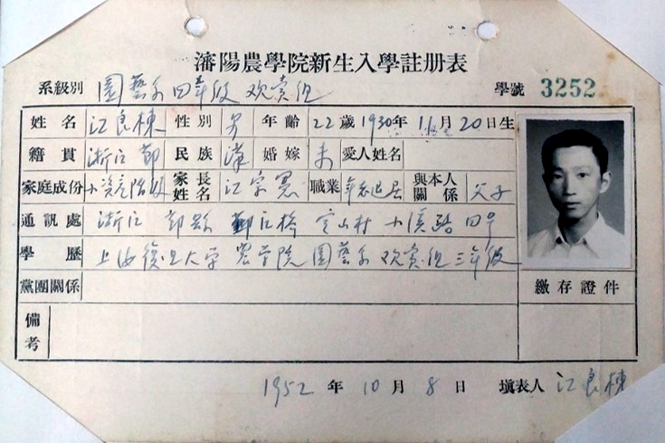 【注】复旦大学农学院园艺系1950年成立“观赏组”,学生来源于园艺系园艺专业一二年级,其中1949级18人、1950级2人。1952年,观赏组随复旦大学农学院调整至我校。1953年,我校观赏组首届学生毕业,颁发“造园专业”本科文凭。