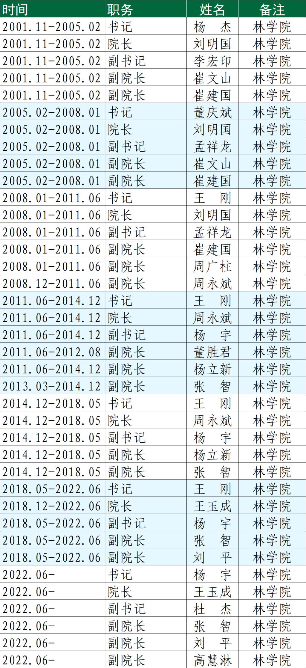 党委书记、副院长 杨宇:主持学院党委全面工作;负责党建、学院工会、宣传工作;负责学院的党风廉政建设、意识形态工作、安全稳定工作、思想政治工作和党的建设五个“一岗双责”工作。 院长 王玉成:主持学院行政全面工作;负责学科工作、团队建设工作、人才和师资队建设工作;负责学院的廉政建设、意识形态工作、安全稳定工作、思想政治工作“一岗双责”工作。 党委副书记、纪委书记、副院长 杜杰:负责学院纪委工作、学生管理工作;负责分管领域的党风廉政建设、意识形态工作、安全稳定工作、思想政治工作和党的建设五个“一岗双责”工作。 院党委委员、副院长 张智:负责学院科研管理、校属植物园、科研平台基地、国有资产与实验室管理、网站建设与运维工作;负责分管领域的党风廉政建设、意识形态工作、安全稳定工作、思想政治工作和党的建设五个“一岗双责”工作。 院党委委员、副院长 刘平:负责学院研究生教育管理、外事(学术活动、院际交流)、实验林场管理工作;负责分管领域的党风廉政建设、意识形态工作、安全稳定工作、思想政治工作和党的建设五个“一岗双责”工作。 院党委委员、副院长 高慧淋:负责本科教学管理、大学生创新创业教育、中外合作办学与本科教育交流工作;负责分管领域的党风廉政建设、意识形态工作、安全稳定工作、思想政治工作和党的建设五个“一岗双责”工作。